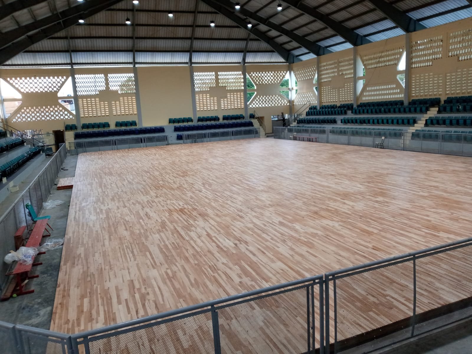 Camacho sostuvo que, a los clubes GUG, Sameji y Plaza Valerio se les instaló tabloncillos nuevos y certificados por la Federación Internacional de Baloncesto (FIBA), así como los parales con sus aros y tableros, dos pizarras electrónicas, cientos de butacas hasta cubrir toda el área de las graderías, baños y duchas y la instalación de luces led de última generación.